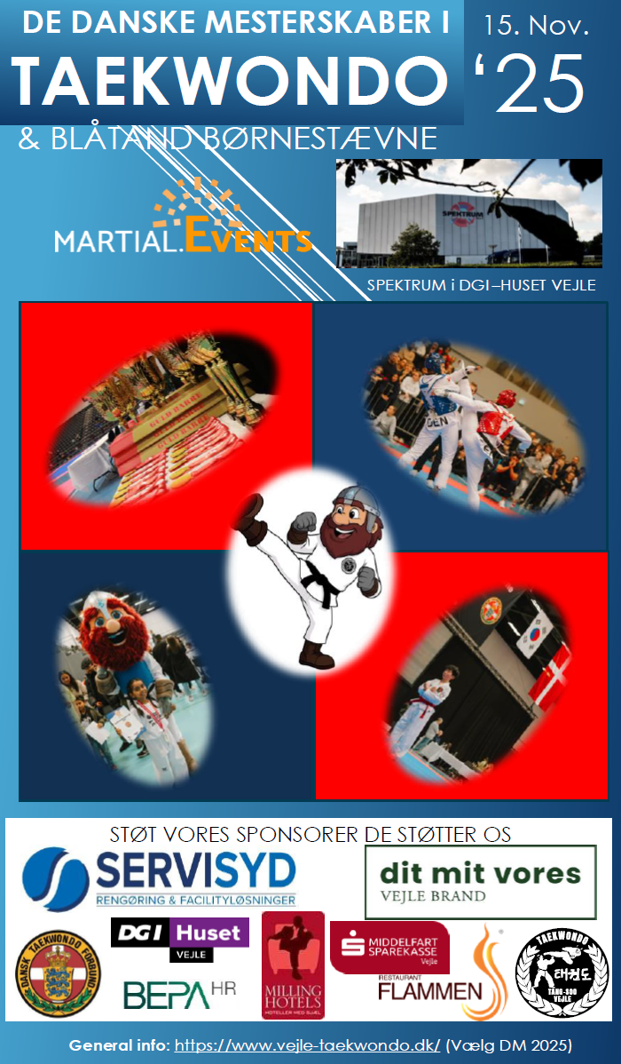 15. November afholdes der DM i Kamp og Poomse i Vejle, samtidig afholdes der Harald Blåtand Cup for de mindste Taekwondo udøver.