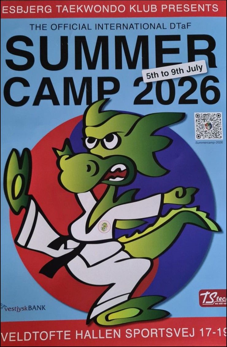 Året sommerlejr afholdes i Esbjerg fra d. 5-9 juli og er for alle aldre og niveauer, og der er mulighed for at fordybe sig i alle aspekter af Taekwondo. Kamp, teknik, grundtræning, selvforsvar, og meget mere. Dertil vil der også være mulighed for træning og aktiviteter, som ikke er relateret til Taekwondo. Klubben opfordre dog til at forældre tage med deres børn, hvis de ikke kan klare sig selv, da instruktørerne selv deltage til træningerne. Der er officiel åbning med træner præsentation og træning søndag d. 5 juli kl. 9.00.